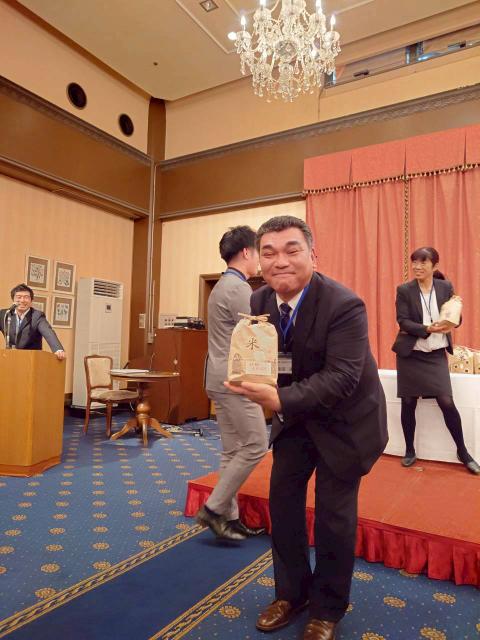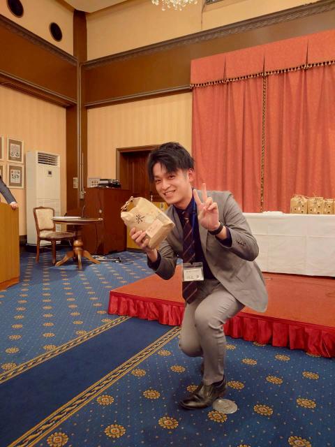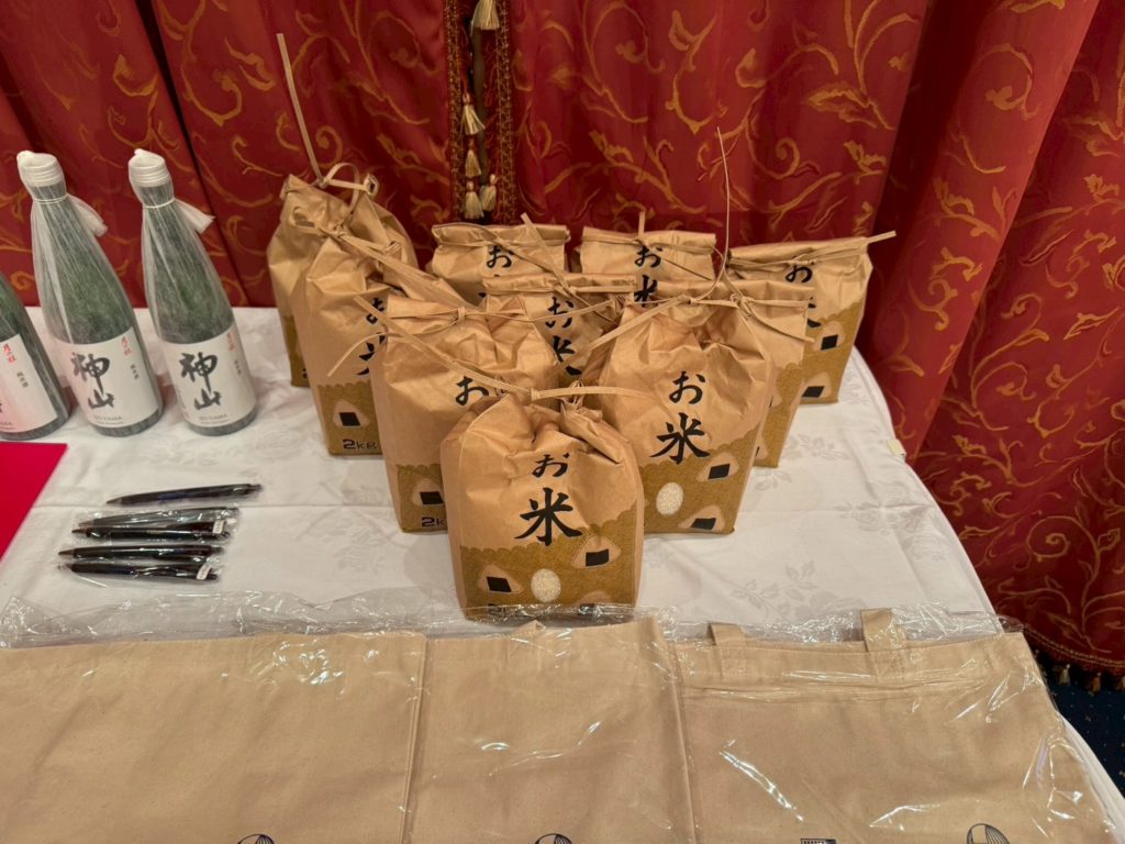 続いて懇親会では、今年の初参加者は6名と年々、少しずつではありますが増えつつあり、また、若手や10年ぶりに出席していただいた方など京都産業大学卒業生のつながりが強くなりつつあることが感じられました。抽選会では懐かしの産大グッズを筆頭に今年は何かと話題になりました「お米」も加え約30名の方に賞品をゲットしていただけたなど非常に盛り上がりました。先輩と後輩といった年齢に関係なく参加された全員が楽しく「昔と今」について熱心に語りあっていました。